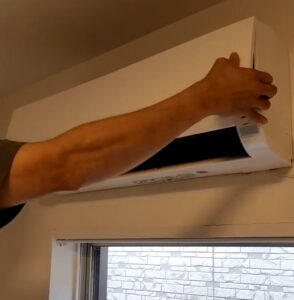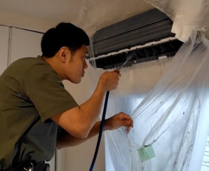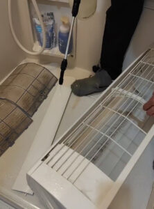 しっかりと養生をして、エアコンの洗浄をしていきます。