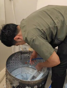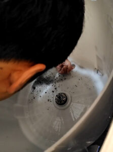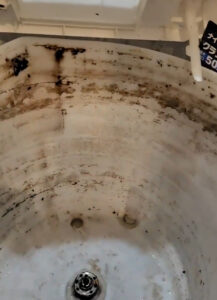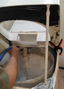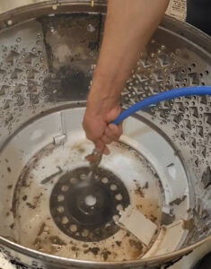 確かに洗濯水を見てみると、黒いカスが出てきてますね。
