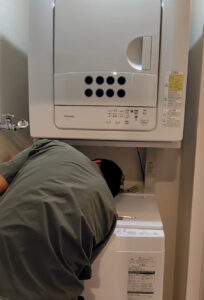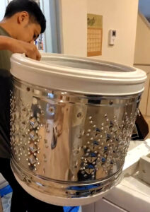 縦型洗濯機で、後付けで上部に乾燥機を置いた形なので、取り外しが大変でしたね(*^-^*)