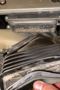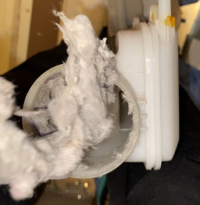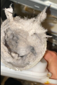 ペットの毛や繊維が固まって、まるで小さなウサギのぬいぐるみみたいに固形化!これが空気の通りを塞いでいた原因です。