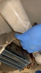 分解して点検すると、案の定ドレンポンプ内部が真っ黒なヘドロや汚れで完全に詰まっていました。