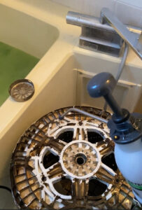 外側も汚れています。そして同時進行でお風呂の追い炊き配管クリーニングをやっていきます。