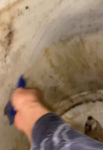 しつこい汚れは、洗剤と高圧洗浄だけではとれませんので、専用のスポンジで洗います。
