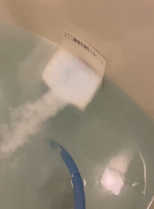 こちらで水を循環して、配管の水垢や菌を除菌してキレイにしていきます。