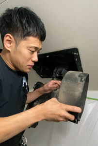 ダクトの中は長年使っていると、ホコリやカビ、キッチンなら油汚れがびっしり。そこを通った空気がまた部屋に戻ってくるので、せっかく清浄機でキレイにした空気がすぐに汚れてしまうんです。