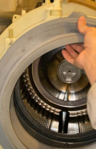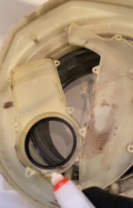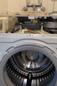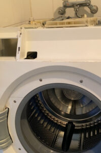ドラム式は縦型洗濯機よりも難易度が上がります。まずは分解ですね。