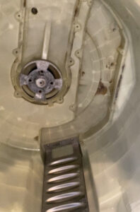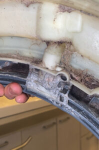 そして、こちらを外すと、洗濯カスが出てまいります。