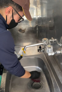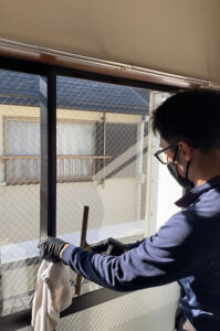 こちらは、かじ君の空室のハウスクリーニングの様子ですが、お風呂場・トイレ・キッチン、さらにはリビングや和室など場所ごとに使う洗剤や器具が変わります。