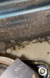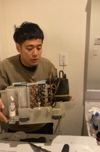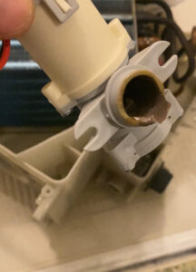 調べたところ、排水部分であるドレンポンプの詰まりのせいで負荷がかかって異音がしているという感じでしたね。