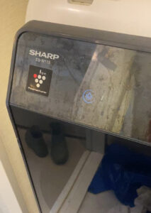千駄ヶ谷にて、SHARPのドラム式洗濯機ES-WS14でございます。乾燥不良のエラーになりますので、分解して汚れを取り除いていく必要があります。