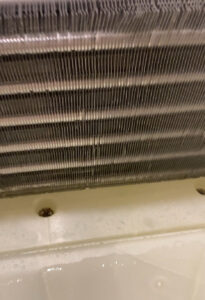 ヒートポンプユニットの汚れもありますが、もしかしたらヒートポンプユニット自体がへたってきてる可能性もある汚れ方ですね。