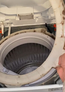 洗濯槽が穴がないので、内側にカビが入ってこないというメリットがありますが、その代わり外側の黒カビは一般の方が掃除するのはとても困難で、プロ業者に頼むしかありません。