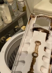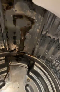洗濯槽が穴がないので、内側にカビが入ってこないというメリットがありますが、その代わり外側の黒カビは一般の方が掃除するのはとても困難で、プロ業者に頼むしかありません。