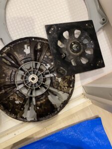 今回はTOSHIBA東芝の洗濯機AW-45M9で、洗濯時に黒カスが出てしまうというお客様でございました。